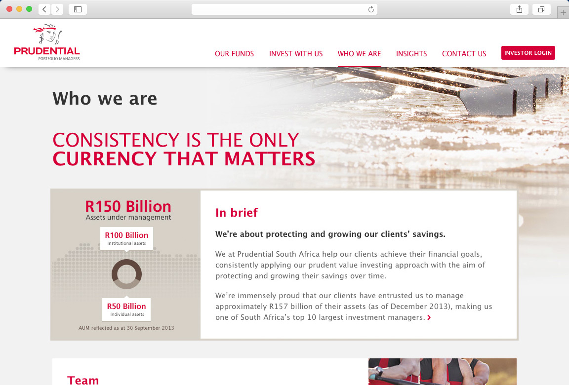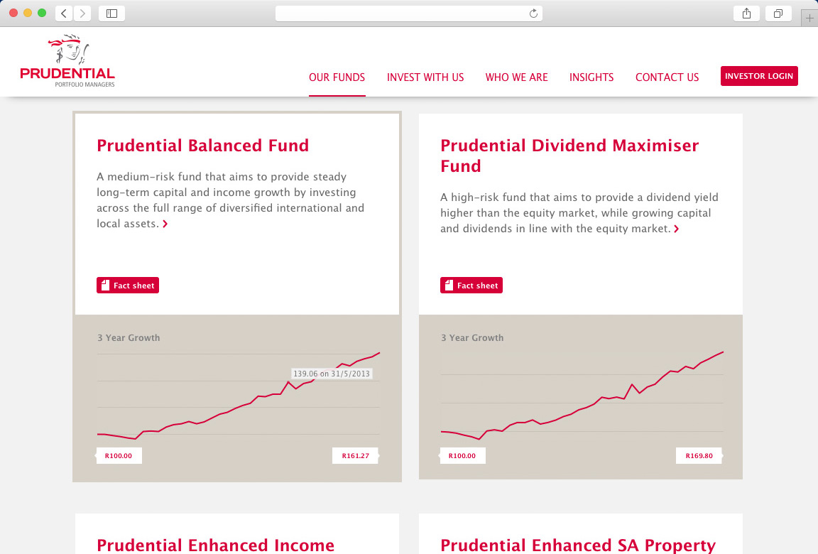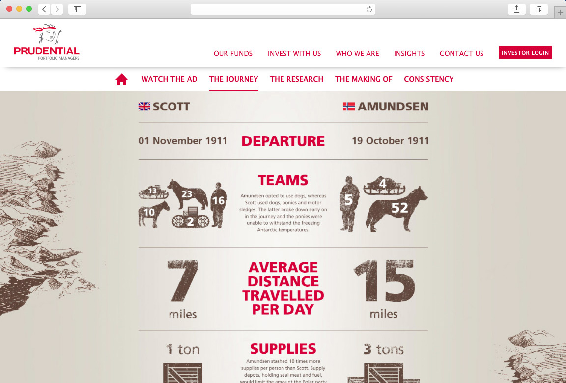 Our methods have proven their value through the doubling of sessions, time on site and number of pages visited since the launch. We have also created microsites to support Prudential's marketing campaigns.